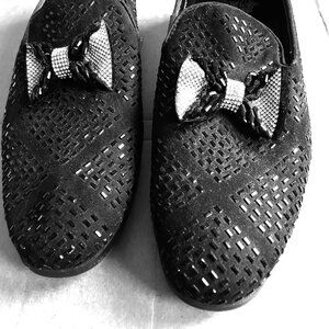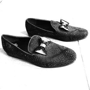 The Royal Shoes Men Black Slip-on Loafer Dress Formal Size 12 is a stylish and comfortable pair of men's dress shoes. With a round toe shape and slip-on closure, these oxford-style loafers are perfect for formal occasions. Made from leather with a leather lining and insole, they offer breathability and comfort. The black color and glitter accents add a touch of elegance, making them suitable for any season. Designed for a size 12 US 45 EU and 11 UK, these shoes are a great addition to any man's wardrobe, especially for a wedding or other important event.