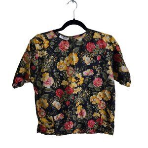 Royal Silk Vintage Made In India Black Floral Short Sleeve Blouse Size M