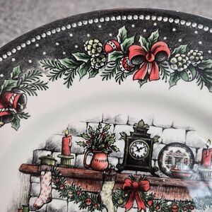 Royal Stafford Christmas Eve Fireplace Hearth Dinner Plates Set of 2 New 10.75"
