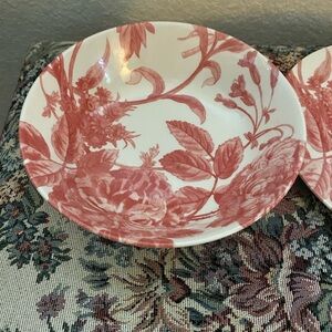 They feature a red floral design on a white background with a smooth rim and no trim.
