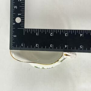 Condition: Small spot of gold paint loss on rim and handle. Minor surface marks inside. No chips or cracks observed.