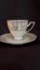 Beautiful teacup and saucer with floral design. Features gold and yellow accents.