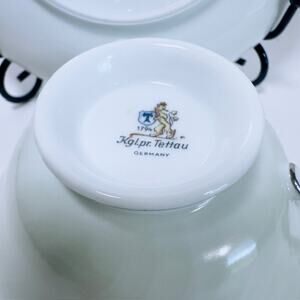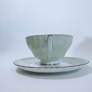Royal Tettau South Wind Grey Green Cup & Saucer Set of 4 Border Swirled Platinum Trim VTG