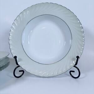 Royal Tettau South Wind Grey Green Rim Soup Bowl Gray/Green Border Swirled Platinum Trim VTG