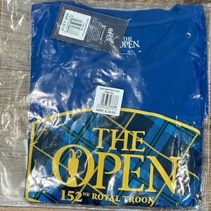 New in bag official The Open at Royal Troon t-shirt purchased in Scotland to commemorate British Open in 2024. Bright with beautiful embroidered The Open plaid emblem on front. Note child’s t shirt used in picture to show what the entire t shirt looks like. Size is Medium.