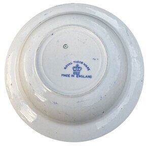 vintage dinner bowl, blue floral bowl, Royal Tudor Ware, English bowl, ceramic dinnerware, collectible bowl, floral design bowl, blue dish, vintage ceramic dish, English tableware, Made in England, Royal tutor ware, decorative bowl, vintage bowl