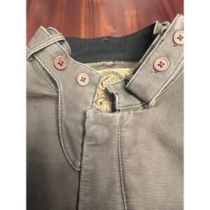 This is a Royal Underground men’s military-style jacket in size Medium. Royal Underground was co-founded by Nikki Sixx (Mötley Crüe) and fashion designer Kelly Gray and is known for its edgy, rock-inspired fashion. Color: Army green. Material: 65% polyester, 35% cotton (shell), 100% cotton lining. Military-inspired design with stand collar featuring multiple button detail. Epaulets on shoulders for a rugged look. Chest welt pocket + hidden side-entry pockets. Full zip front with snap button storm flap. Tapered cuffs. Condition: Pre-owned, gently worn. No rips, stains, or major flaws. Light wear consistent with use (see photos). This jacket comes from a nonsmoking home.