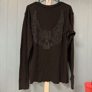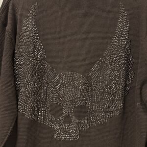 Royal Underground Y2K Thermal Rhinestone SKULL Wings Men’s L Shirt Graphic Biker