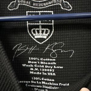Made from high-quality materials, this shirt is comfortable to wear and designed to last. The thermal feature adds an extra layer of warmth, perfect for colder days. The rhinestone accents give it a unique sparkle, making it a great addition to your wardrobe. Available in black and in a regular size L, this shirt is perfect for men who want to show off their bold and rebellious side.