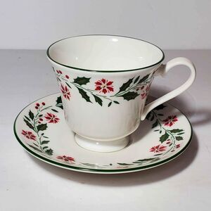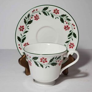 Royal Vale Teacup and Saucer Holly Winter Christmas Vintage