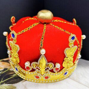 Royal Velvet Gold King's Crown, Tufted King Crown, Crystal Gold Crown, Gifts