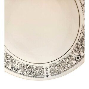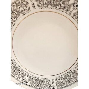 Set of 2. This elegant Royal Wentworth plate features intricate black floral patterns on a fine ivory backdrop, highlighting the sophistication of its design. The gold trim adds a touch of luxury, making it a distinguished choice for formal dining settings. Crafted in Japan, it reflects a timeless appeal suitable for collectors and enthusiasts.