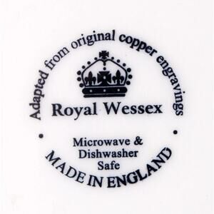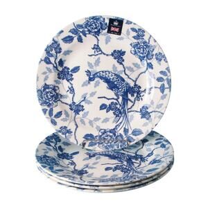 This is a set of 4 Royal Wessex Blue and white porcelain dinner plates. The plates feature an Asian Kujaku peacock / pheasant on a branch surrounded by flowers. The design is adapted from original copper engravings. The plates are 10 1/2” diameter. They are made in England so you know they are very high quality. The plates are microwave and dishwasher safe.