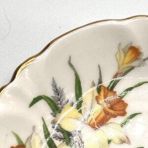 Royal Windsor England White Trinket Dish Yellow Floral Gold Rim Fine Bone China