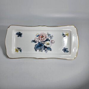 Royal Worcester Bone China Bone Rectangular Serving Tray Floral Design Gold Trim