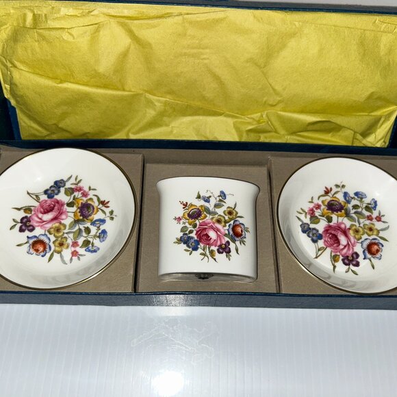 Royal Worcester Bone China Floral Vanity Set, NIB, Vintage