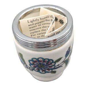 This elegant Royal Worcester egg coddler is crafted from fine porcelain and adorned with a charming floral pattern. The silver lid adds a touch of sophistication, making it both a functional kitchen tool and a delightful display piece. Ideal for preparing perfectly cooked eggs.