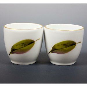 Lot of two tiny 1¾" tall porcelain cups marked Royal Worcester, Flameproof, England. I believe these are from the Eversham Gold line. They hold about 1 fl. oz.
