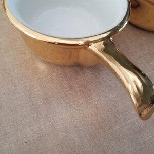 Vintage 1950s Royal Worcester Lustre Gold Mini Handled Cocettes 3" - Set of Four