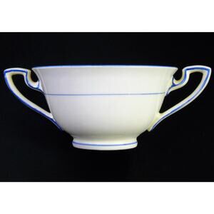Antique c.1922 Royal Worcester PORTIA CREAM SOUP CUP / BOWL Double Handle Fruit Cameo's And Blue Fleur de Lis Scrolls - MINT Condition With 1922 Mark!