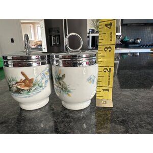 Royal Worcester Porcelain Lidded Jars With Bird Design Set Of Two