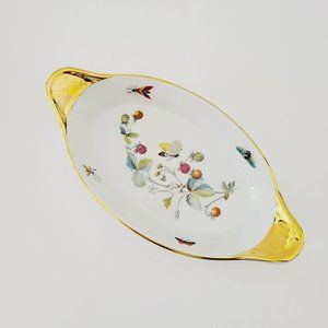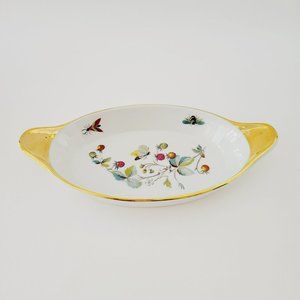 Royal Worcester Strawberry Fair Gold Trim Oval Baking Dish Size 9 Butterflies