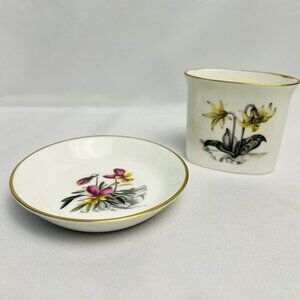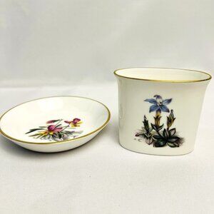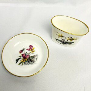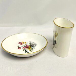 Royal Worcester Vintage Porcelain 2 pcs. Multi Floral Motif Gold Trim Vanity Set
