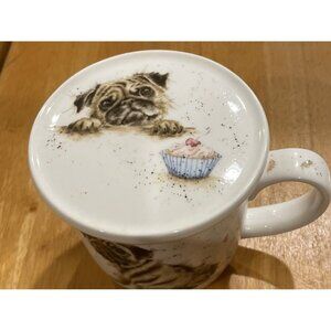 Royal Worcester Wrendale Designs Mug Pug Love Dog Puppy A15 With Saucer Cupcake