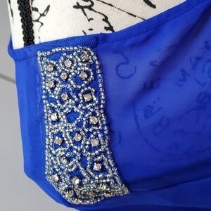 Royal blue Sheer Embellished Blouse Lightweight delicate Sz.Large