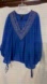 Royal blue blouse embellished with beads and rhinestones along deep V-neck Sz L