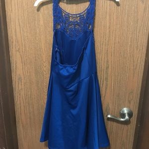 Royal blue halter skater dress with laced front