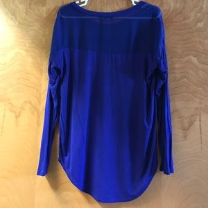 Royal blue, long sleeve shirt. Top part is see through blue! Size small but meant to be a bit baggy.