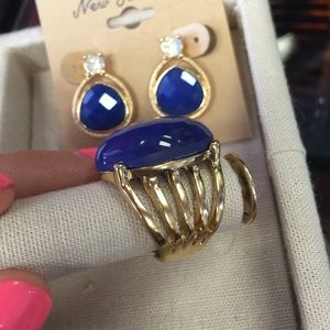 Royal blue ring with earring set.