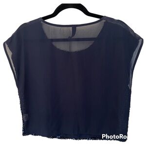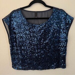 Royal blue sequined cocktail party blouse, M, front sequins with sheer back.