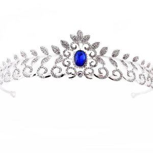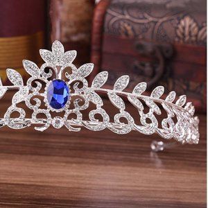 Royal blue silver Crystal Rhinestone Tiara Crown Prom Pageant Bridal weddi…