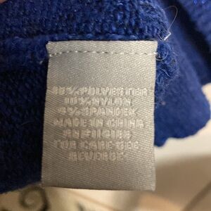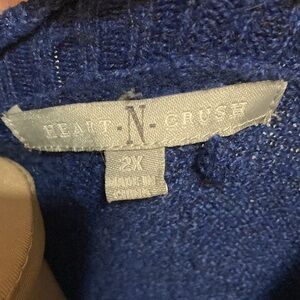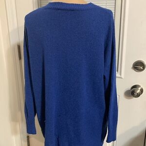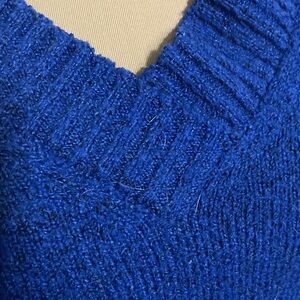 The color is royal blue, and there’s little sparkles throughout the sweater