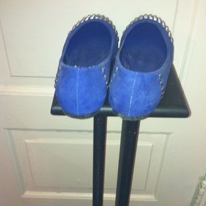 Royal blue suede studded flats. Worn once. Studs on front of flats as well as down each side of the heels.