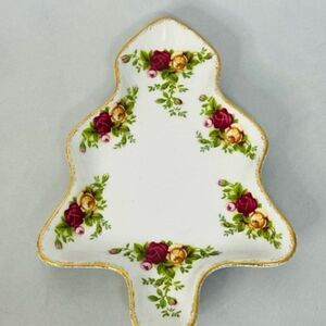 Royal Albert Old Country Roses Christmas Tree Shaped Plate/Candy Dish 7x5" Very
