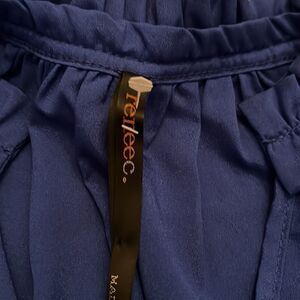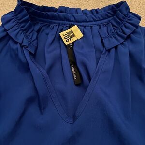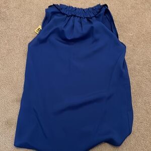 Blue sleeveless blouse. Worn once. Dry cleaned.