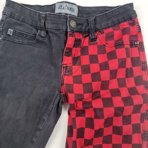 Royal Bones Tripp Skinny Jeans Black Red Buffalo Check Split Goth Women's Small