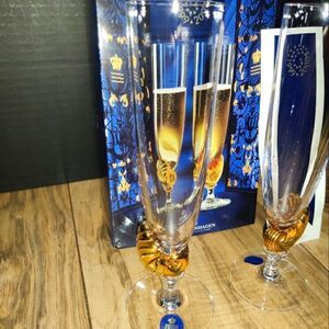 Royal Copenhagen Neptun Millenium Champagne Glasses New Year 1999-2000
