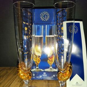 Royal Copenhagen Neptun Millenium Champagne Glasses New Year 1999-2000. Has some wear from age and storage. Sold as is.
