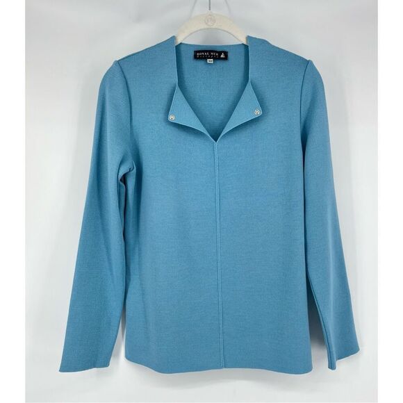 Elevate your wardrobe with timeless French craftsmanship from Royal Mer Bretagne. This high-quality women’s knit top blends minimalist structure with maritime elegance. Designed in a serene ocean blue hue, it features a sleek pullover silhouette with a distinctive stand-up snap collar that can be worn open or closed for versatile styling.