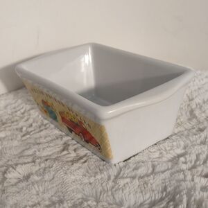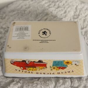 This New with tags white ceramic Royal Norfolk "Fresh Picked Apples" mini 5" loaf dish is microwave, dishwasher and oven safe. All offers welcome.