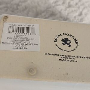 This New with tags white ceramic Royal Norfolk "Fresh Picked Apples" mini 5" loaf dish is microwave, dishwasher and oven safe. All offers welcome.