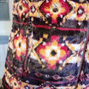 Royal Robbins vest faux fur southwest print zip front , zip pockets in excellent condition 19" pit-pit 24" long