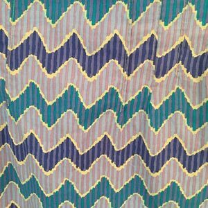 This 100% cotton skirt features a colorful wave pattern in purples & turquoise, wide waistband,side zip and is fully lined