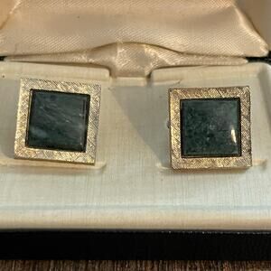 Royale Vintage Y2K Cufflink Golden Tone Green Faux Stone