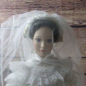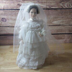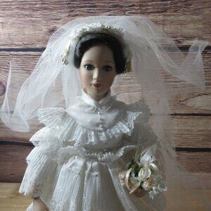 Royalton Collection Brunette Bride 16" Porcelain Doll 1998 Inc Stand