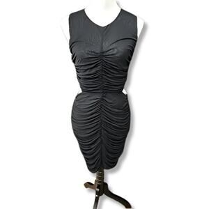 Royalty By Maluma Cut-Out Mini Dress Sleeveless Mesh Ruched Black Women's M NWT